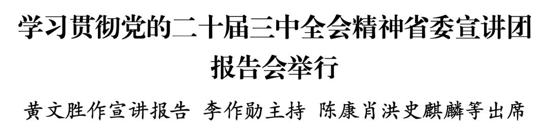 报告会上,黄文胜围绕深刻认识党的二十届三中全会重大意义,深入学习领会习近平总书记在全会上的重要讲话精神,准确理解全会《决定》提出的重大改革举措,全力抓好全会精神的贯彻落实,以及认真学习领会省委十三届五次全会精神作了全面系统的宣讲解读。